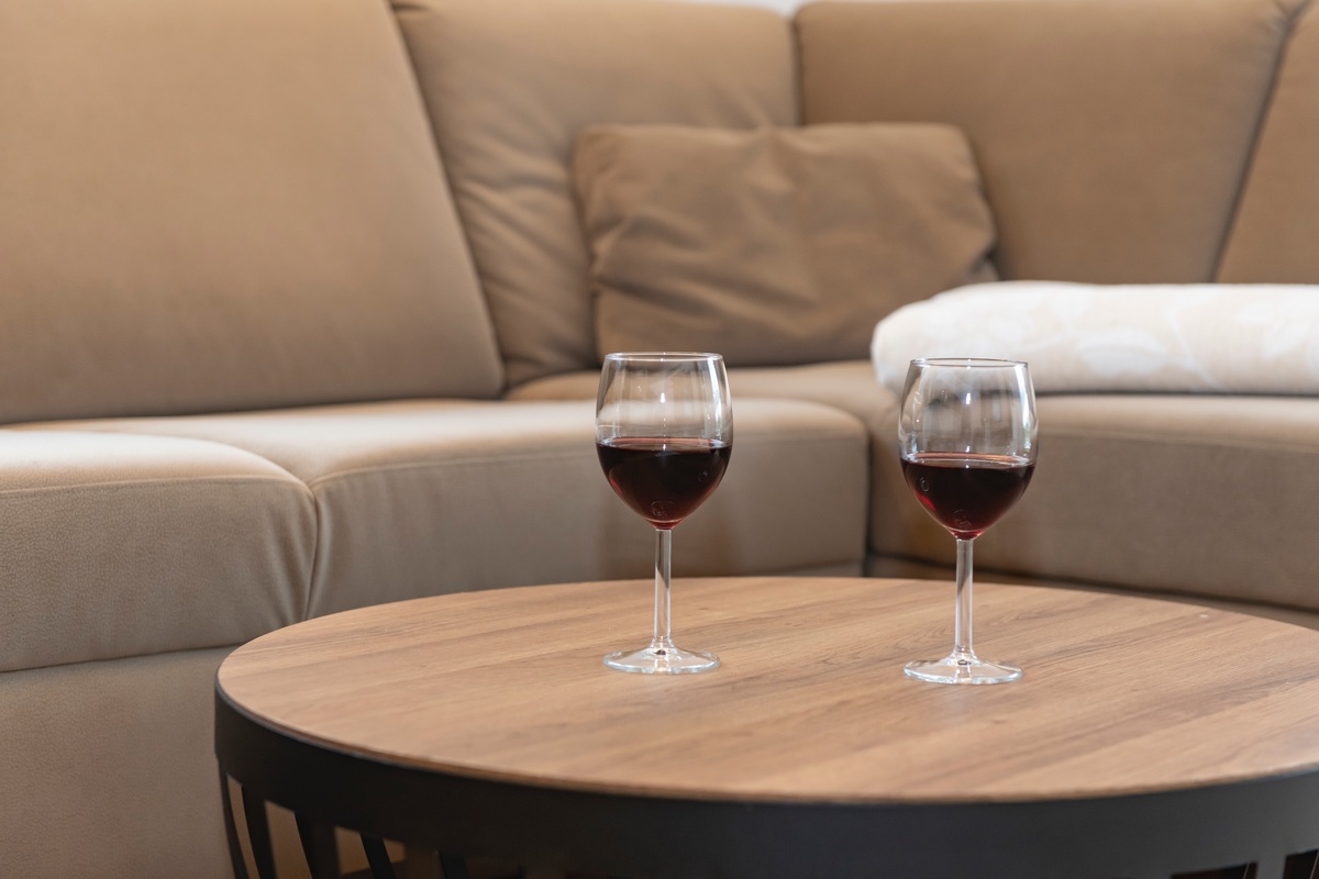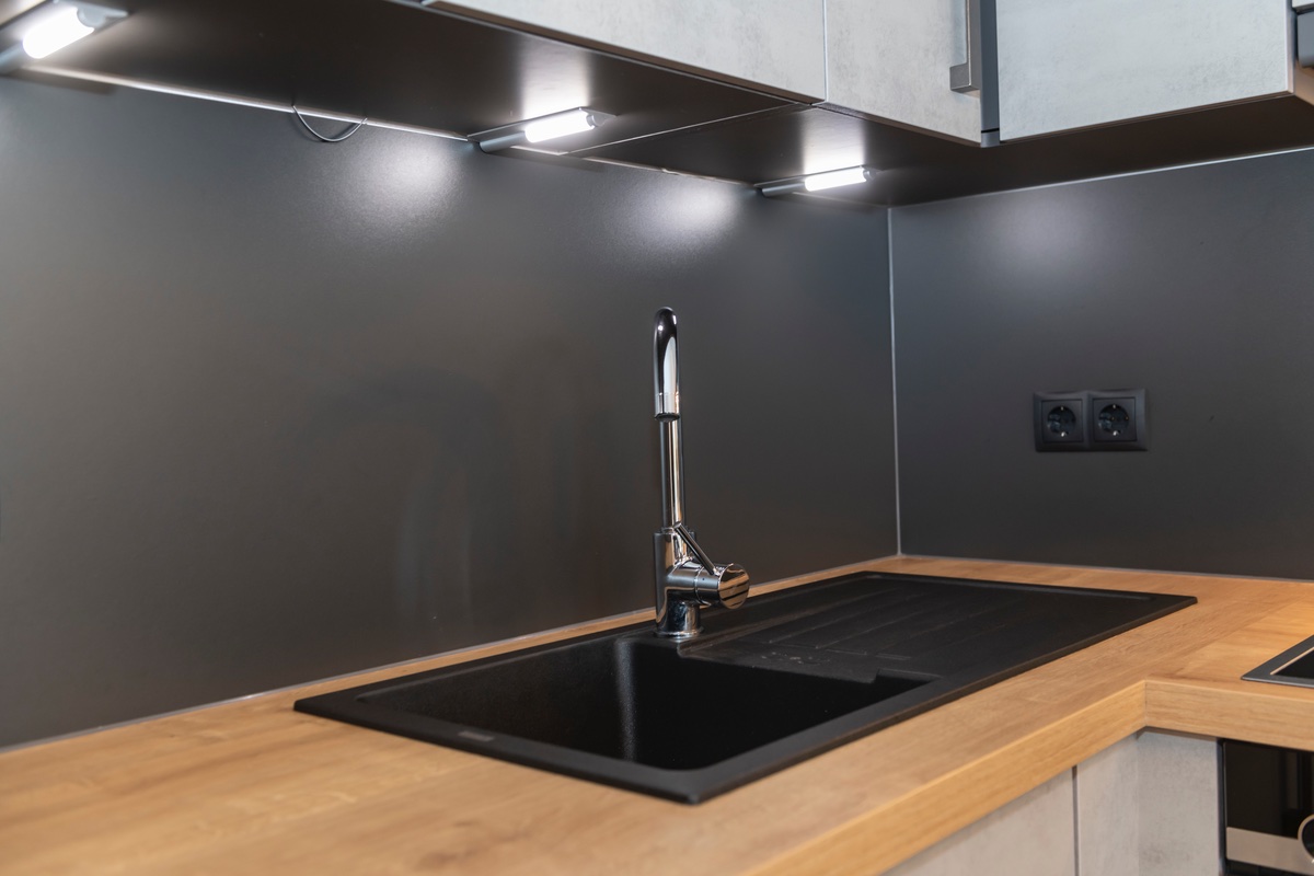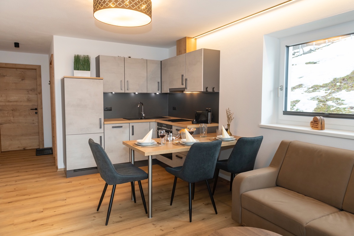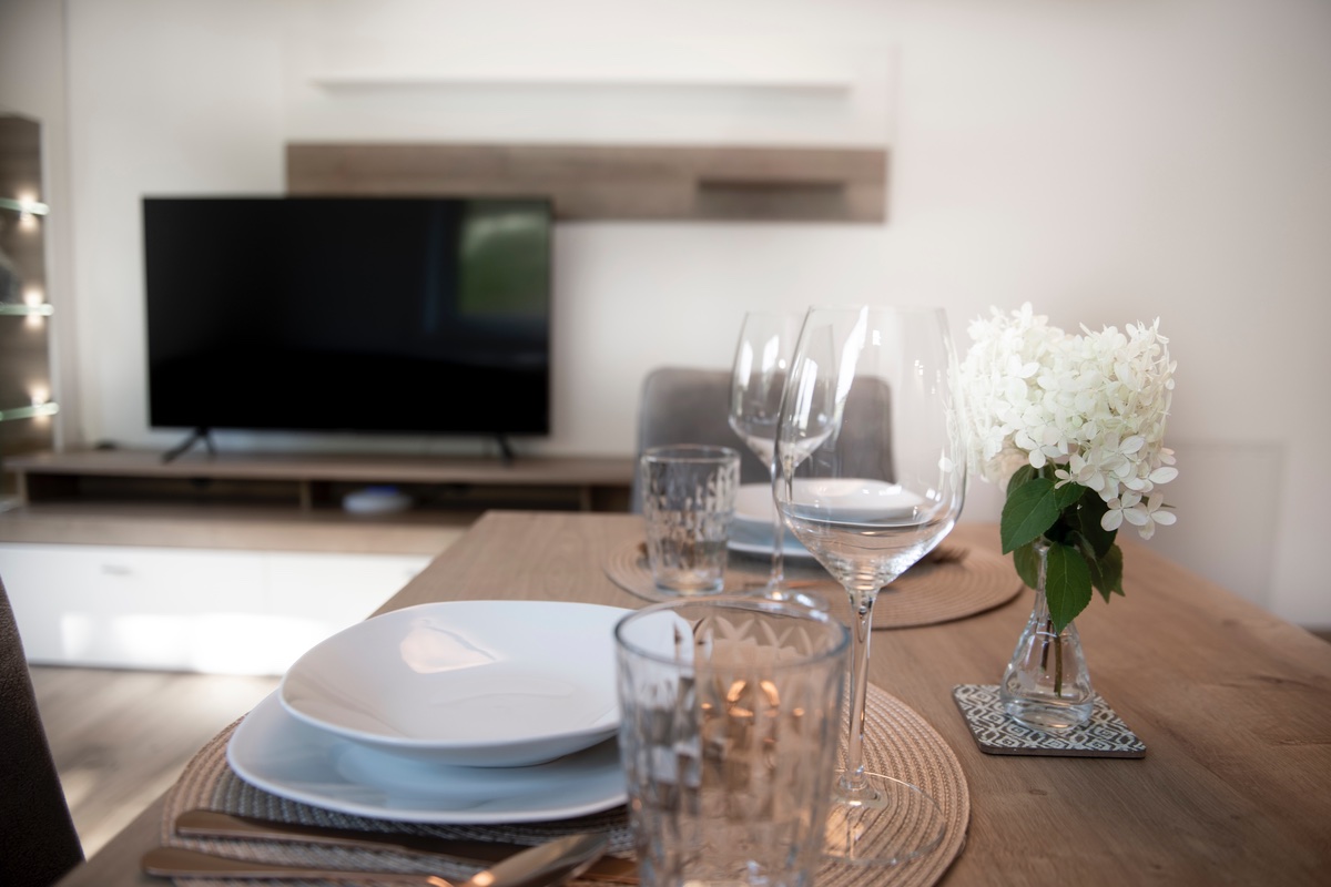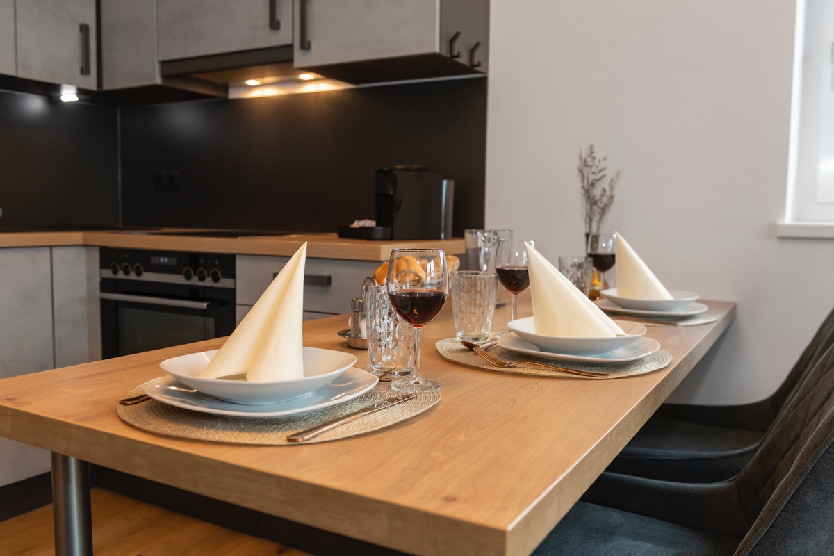 Neues topmodernes Garten-Apartment mit einem Schlafzimmer. Ideal für zwei Personen, aber auch für Familien mit einem Kind, das auf der Couch schläft.